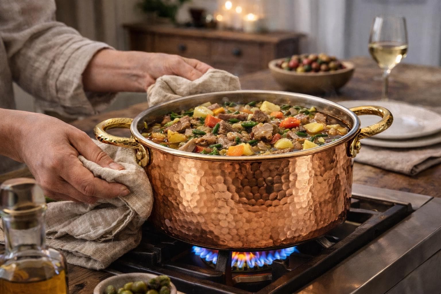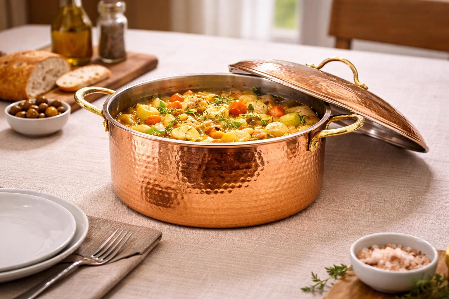 This premium hammered copper pot is handcrafted by skilled artisans using traditional techniques to deliver exceptional cooking performance, timeless beauty, and heirloom quality. Designed for luxury kitchens, gourmet cooking, boutique hotels, professional chefs, and elegant home dining, it offers superior heat conductivity, even cooking, and a stunning presentation that elevates every meal.