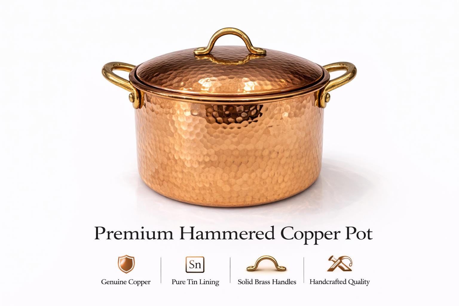 Premium Handcrafted Hammered Copper Cooking Pot | Tin Lined | Solid Brass Handles | Professional Luxury Copper Cookware for Gourmet Kitchens, Home Chefs & Restaurants