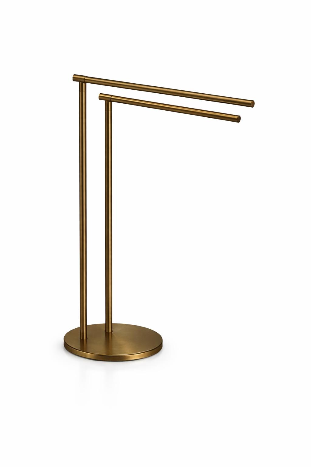 Freestanding double towel rack made from stainless steel SUS304 for bathroom use. Luxury floor standing towel holder with two bars, stable base and modern design for premium interiors.