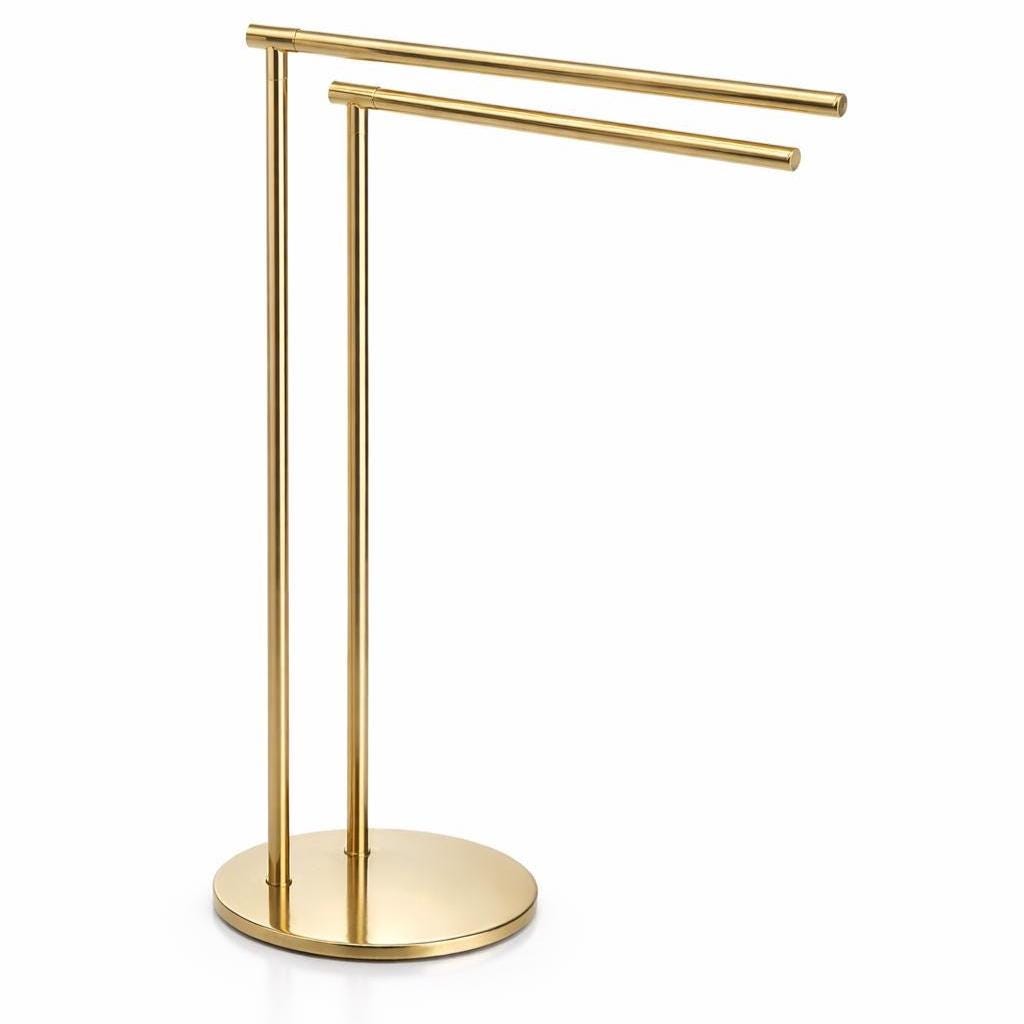 Keywords : gold towel rack, freestanding towel holder, luxury floor towel stand, stainless steel bathroom accessory, gold bathroom decor, standing towel bar, no drill towel organizer, hotel-style towel display, double bar towel rack, high-end towel storage, tall towel holder for modern bathrooms