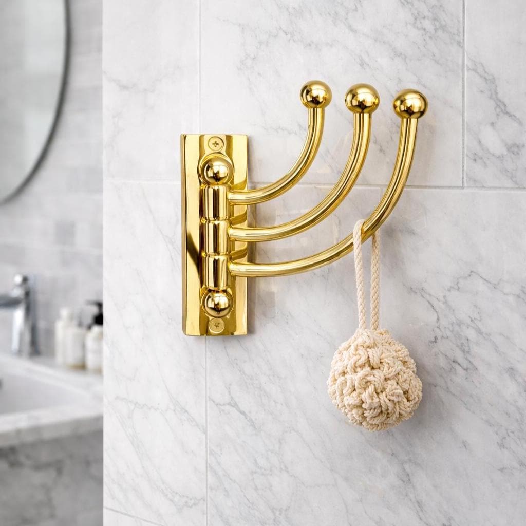 Luxury stainless steel swivel wall hook available in Gold, Black, Chrome, Brass & Rose finishes with 2, 3 or 4 rotating arms. Rust-proof, space-saving and perfect for bathrooms, entryways, hotels and modern homes.