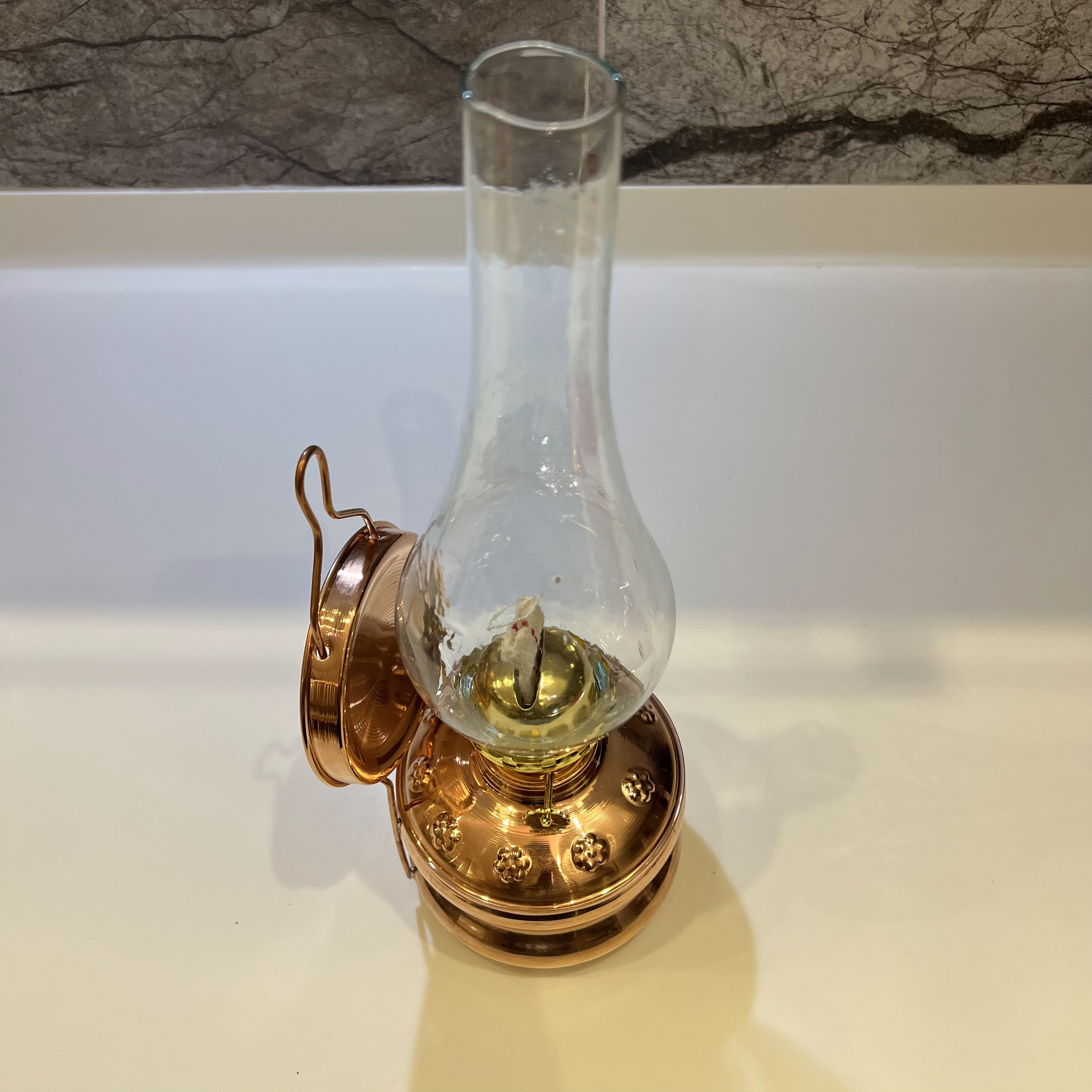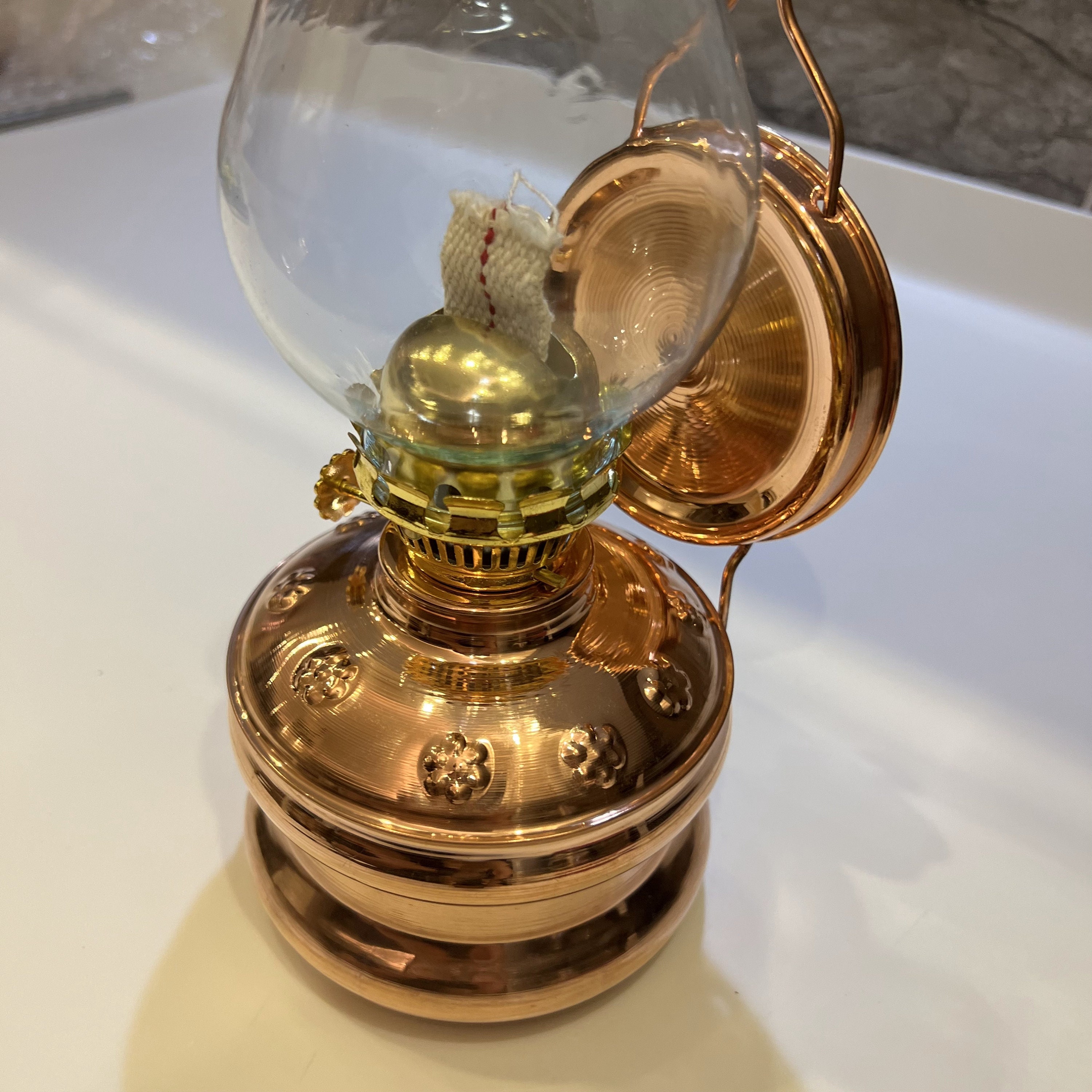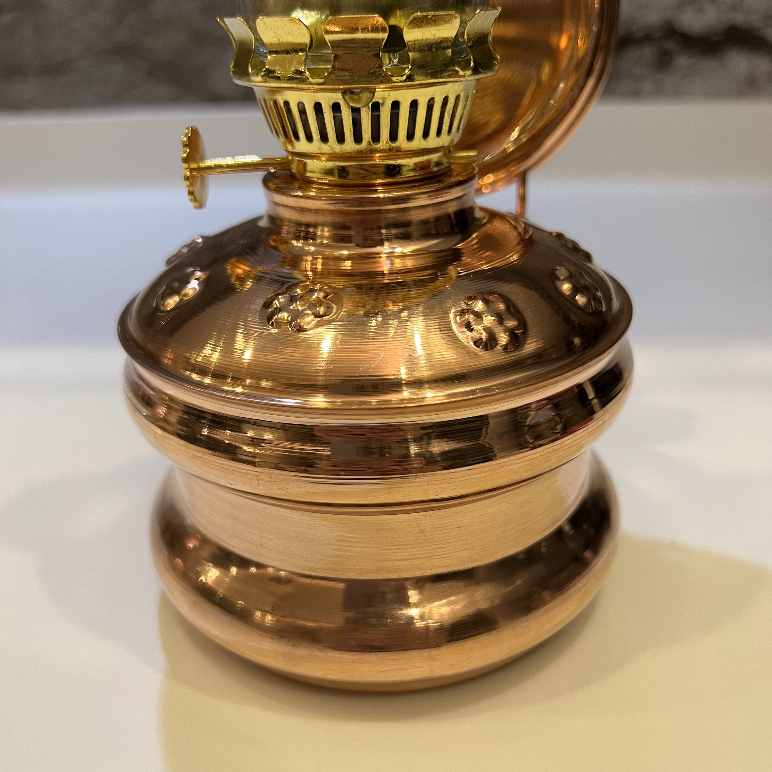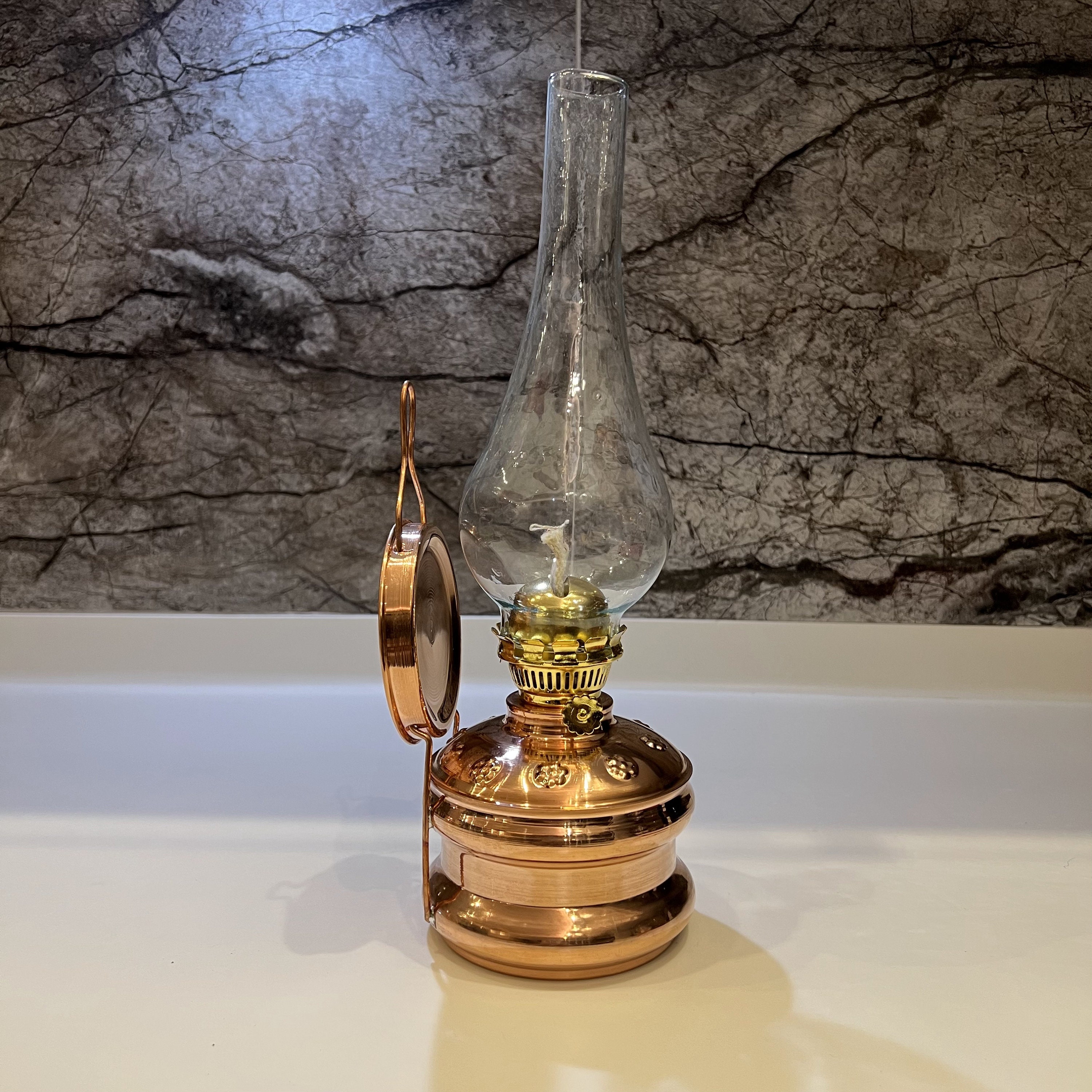 As you explore the intricate patterns adorning the copper body, enjoy the warm and inviting glow it emits, and effortlessly adjust the gas flame to your preference, you'll discover that our Desktop/Wall Mount gas lamp is not just a lighting fixture; it's an experience—an embodiment of elegance and history.