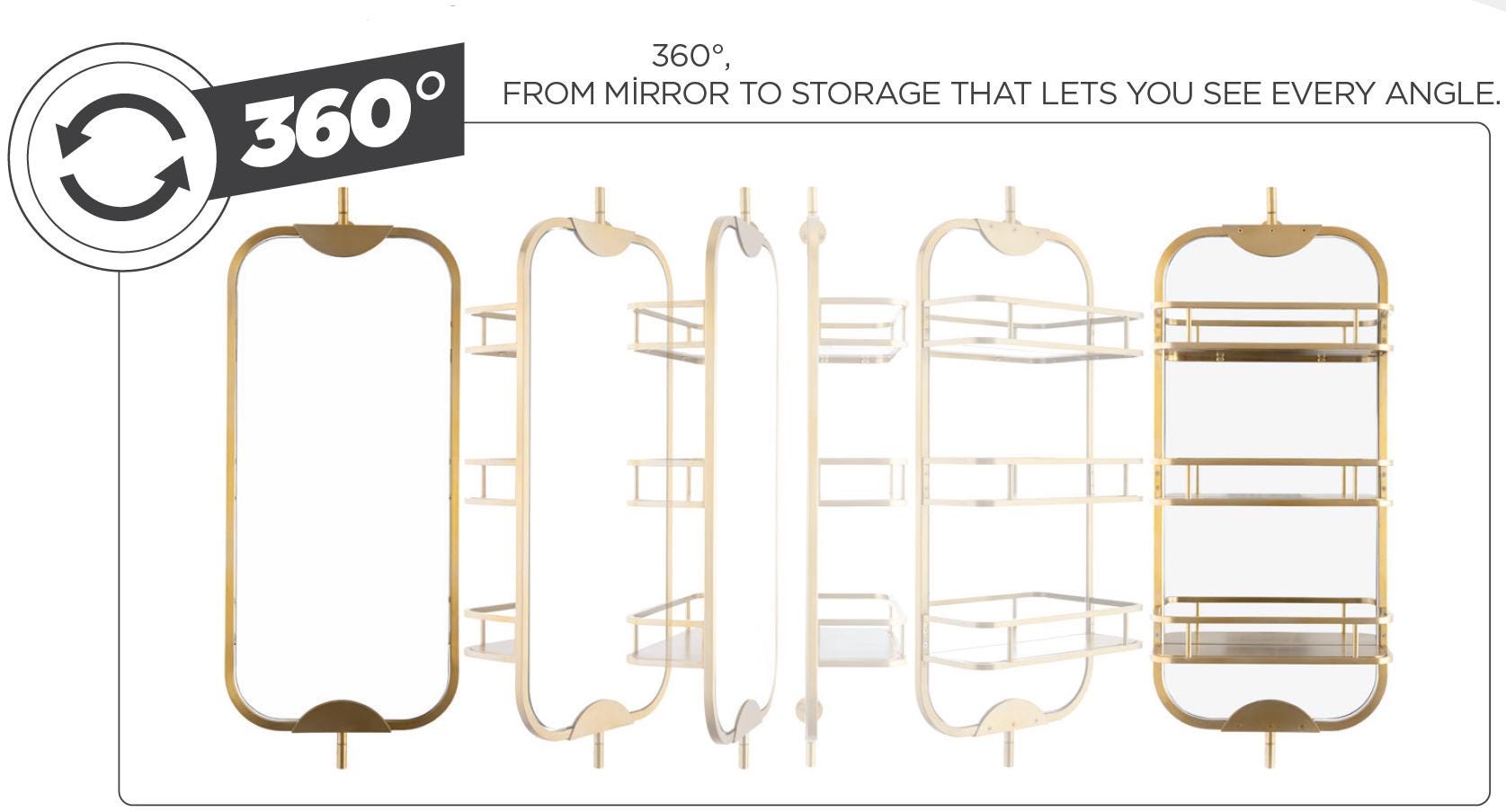 💎 360° Full Swivel Design – Rotate between a full mirror and a multi-shelf unit to suit your daily routine or aesthetic preferences.