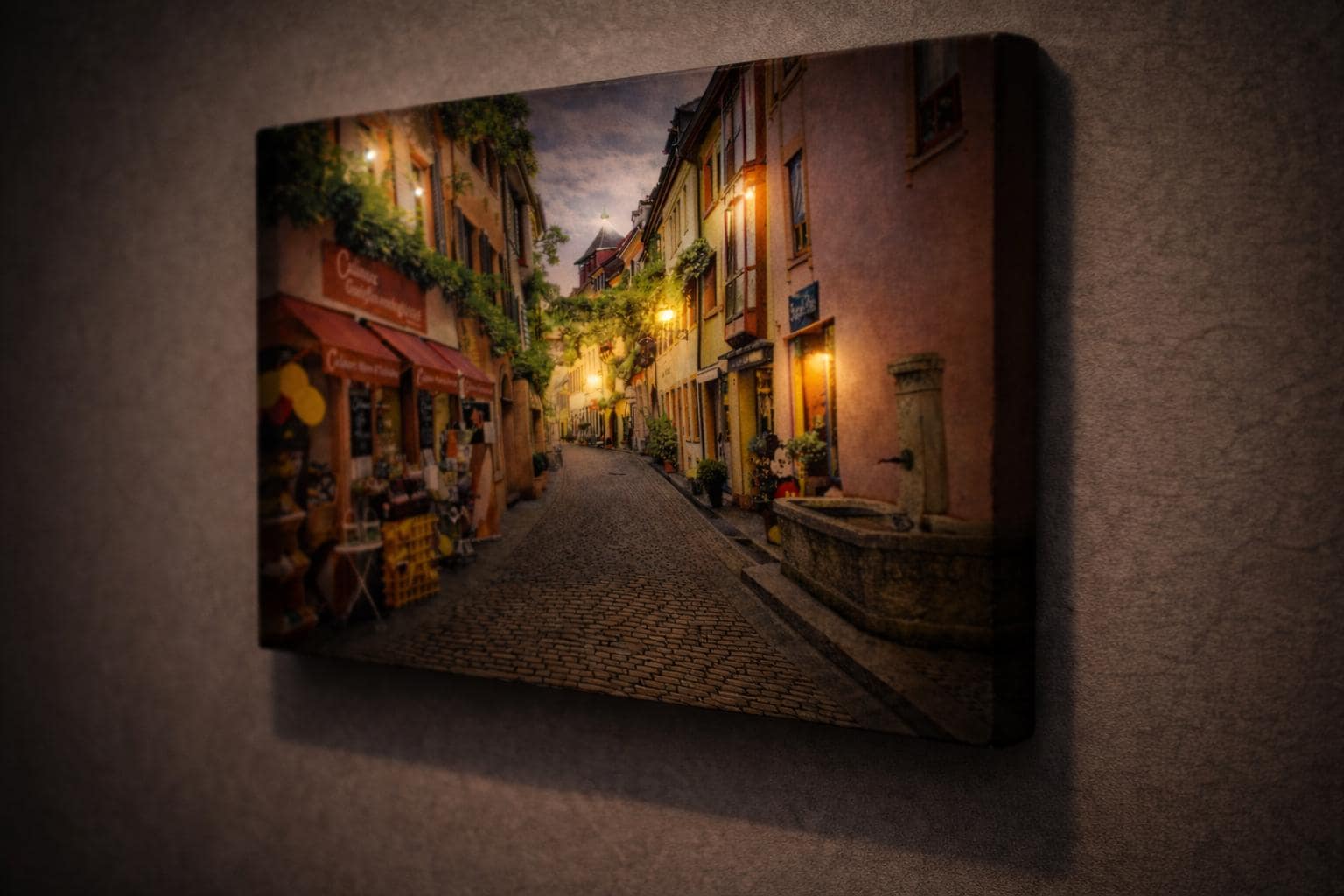 Keywords: freiburg wall art, european street art, cobblestone wall art, led canvas art, village wall decor, cozy wall art, alley wall art