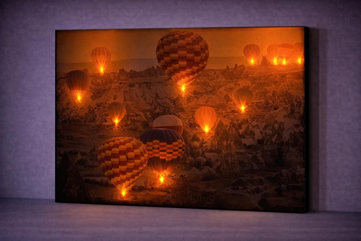 Keywords: cappadocia wall art, balloon wall decor, hot air balloon canvas, travel wall art, illuminated canvas art, turkey landscape decor, cappadocia balloon art