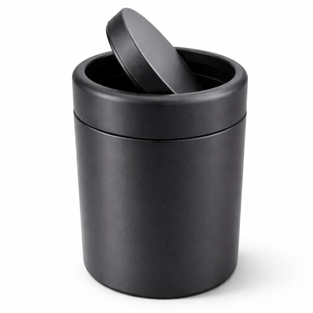 Keywords: swing lid trash can, matte black garbage bin, stainless steel waste bin, round kitchen trash can, luxury bathroom trash bin