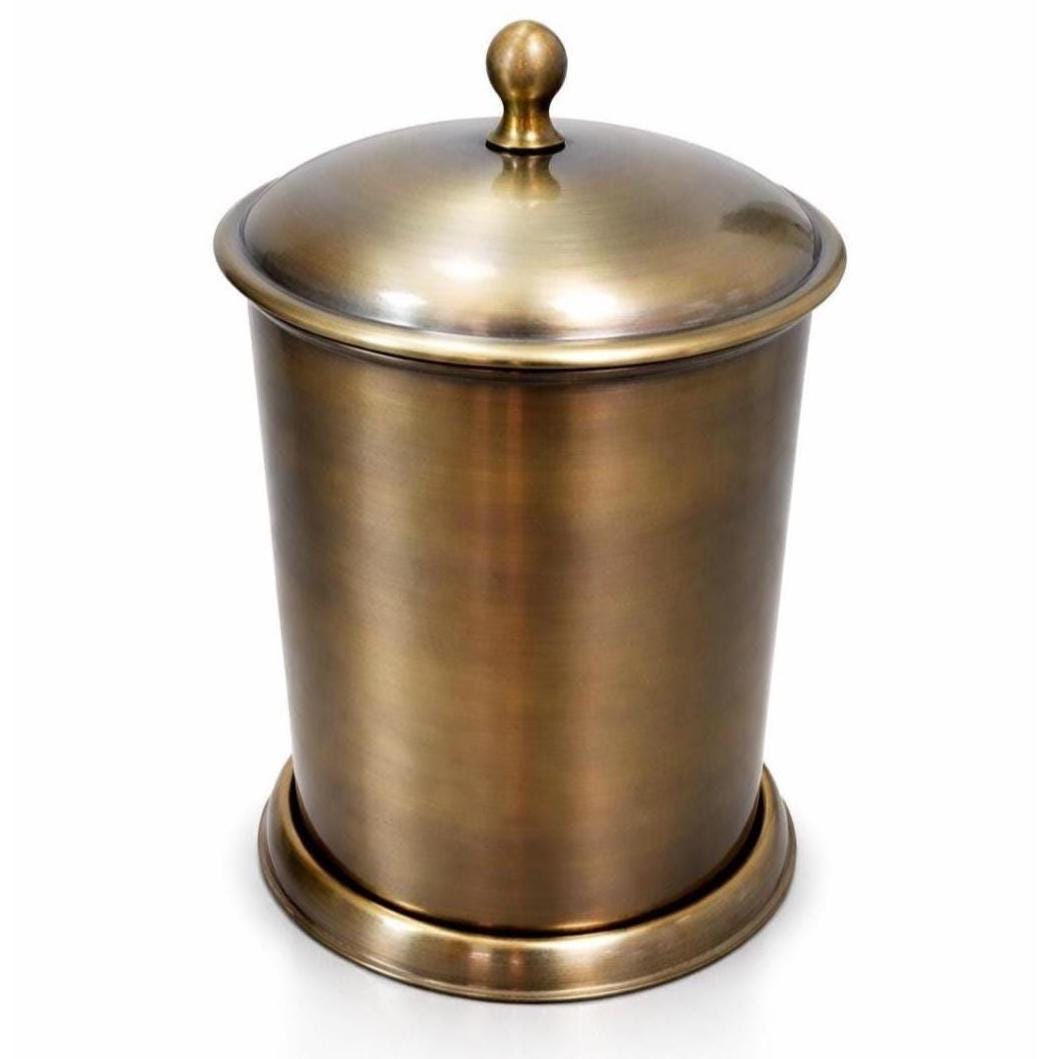 Luxury gold antique stainless steel waste bin with lift-off lid and removable inner bucket. Classic, rust-proof and hygienic design — perfect for luxury bathrooms, hotels and timeless interiors.