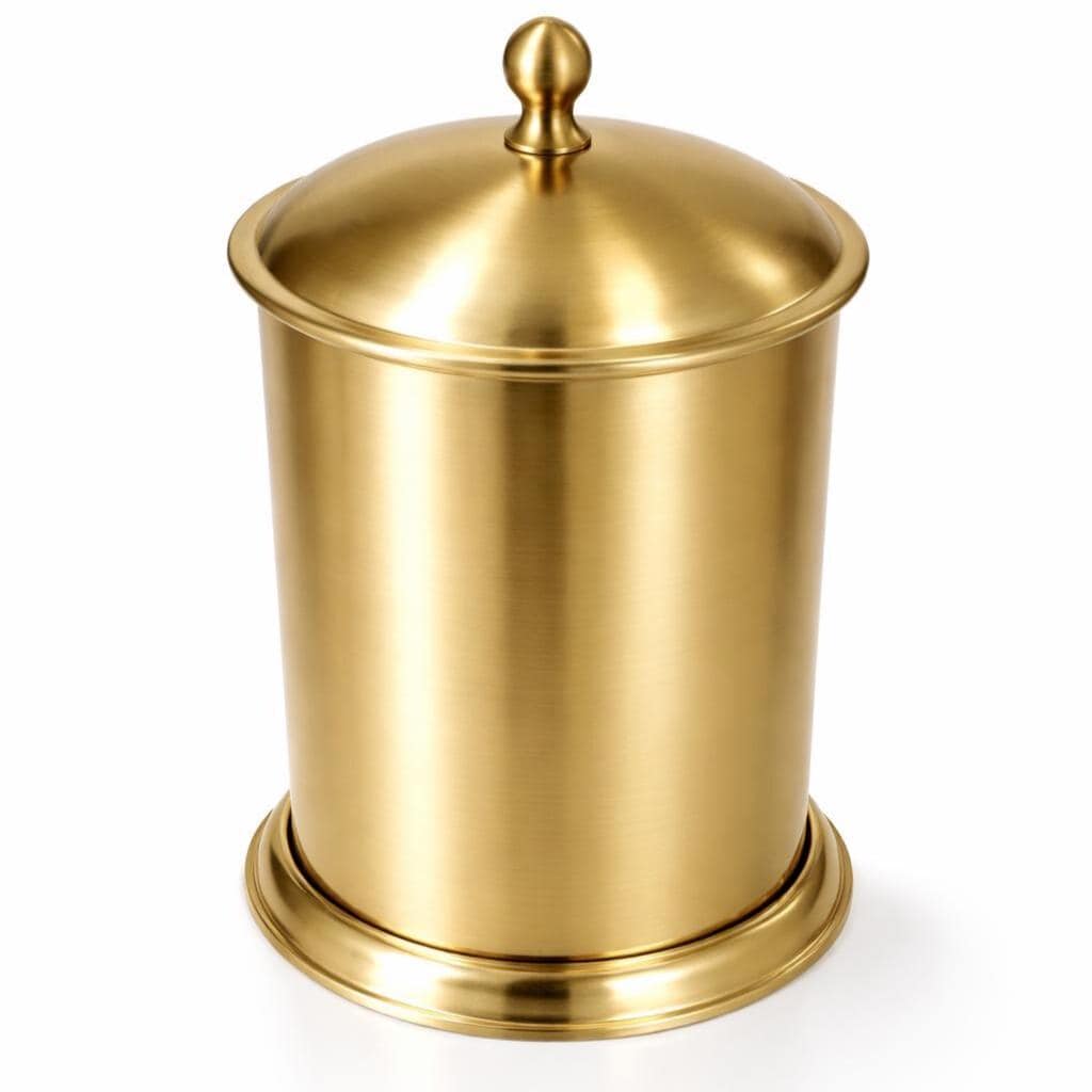 Luxury gold brushed stainless steel waste bin with lift-off lid and removable inner bucket. Hygienic, rust-proof and elegant design — perfect for bathrooms, hotels, offices and modern interiors.