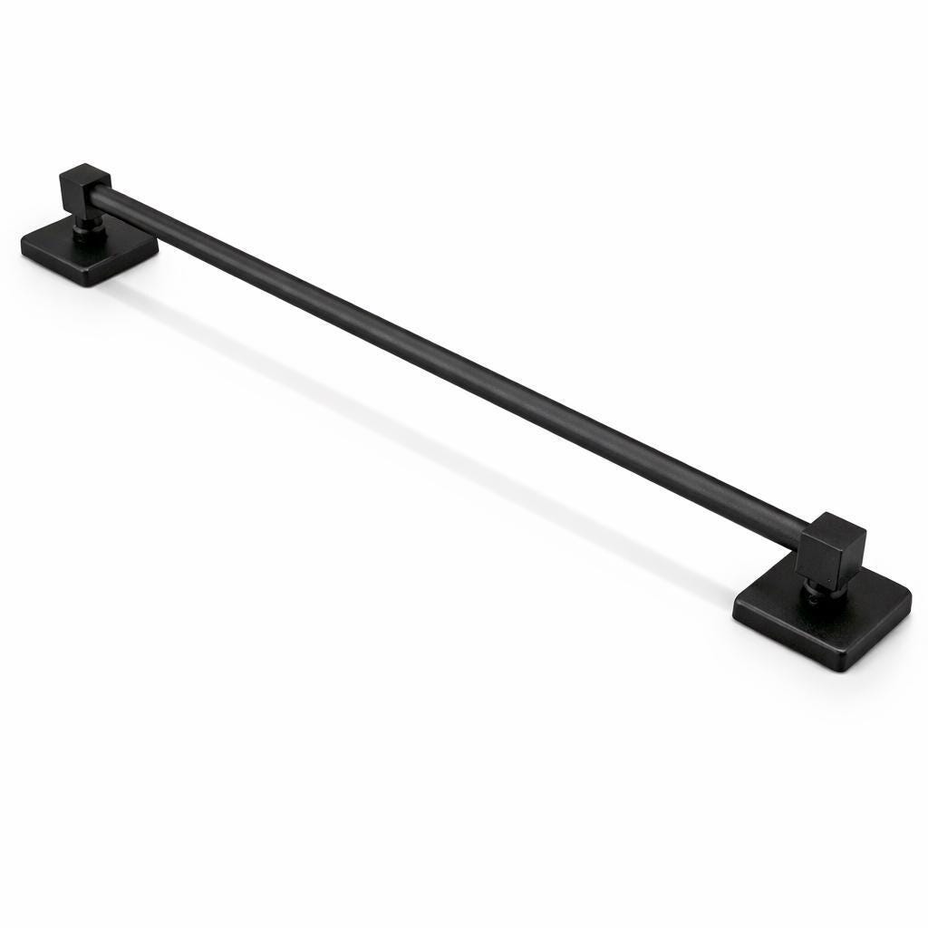 Black stainless steel towel bar designed for modern bathrooms. Wall mounted SUS304 towel holder with square mounts, heavy duty construction and multiple length options for daily bathroom use.