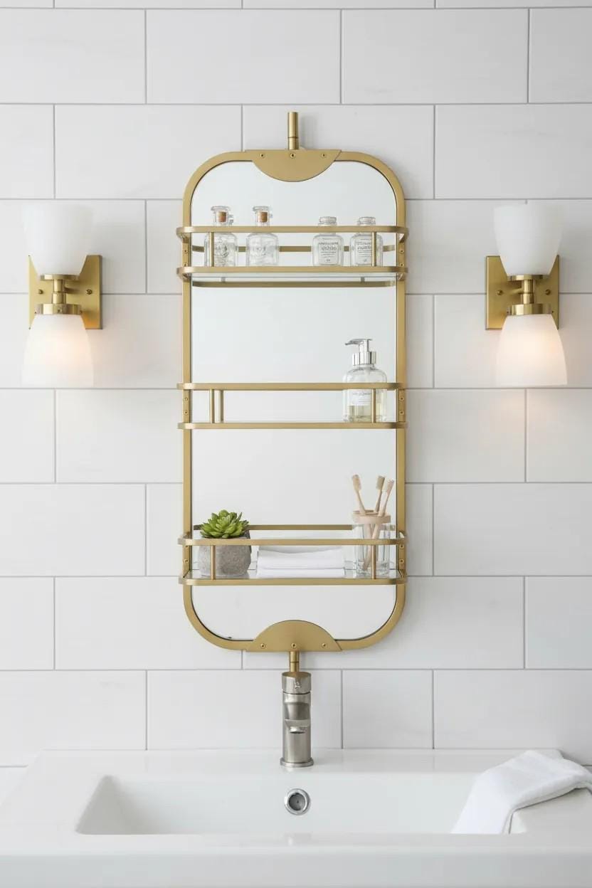 ✔ Dual-Sided Functionality – Standard mirror on one side, storage shelves on the other.